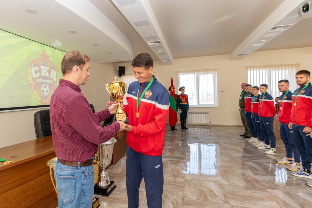 Секретарь Федерации футбола Приднестровья Евгений Цуканов поблагодарил армейцев за вклад в развитие спорта республики. Он отметил, что команда Министерства обороны сохраняет лидерство, становясь чемпионом страны и обладателем кубка уже второй год подряд.