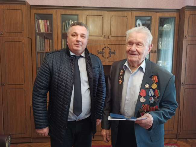 С днем рождения дубоссарского ветерана Великой Отечественной войны поздравило и руководство Тираспольского винно-коньячного завода «Квинт».