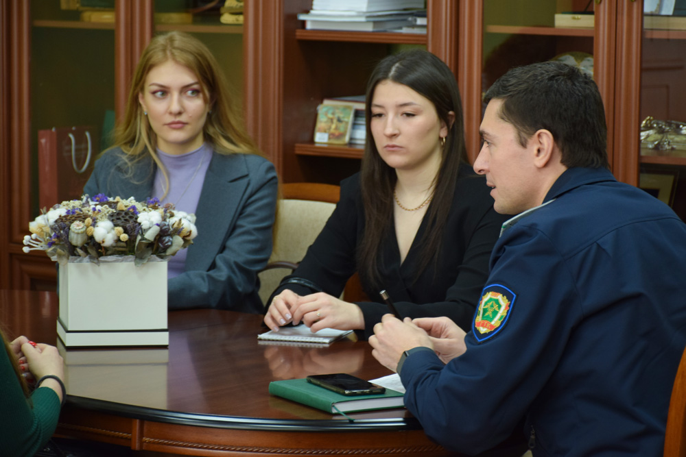 Председатель ГТК Валентин Грабко с интересом выслушал рассказ будущих коллег об их студенческих буднях, проблемных аспектах и сложностях, связанных с ограничениями в перемещении из-за внешнеполитических факторов. Особенно его интересовали планы студенток-выпускниц на будущее, ведь впереди у них защита диплома, госэкзамены и определение места дальнейшей работы.