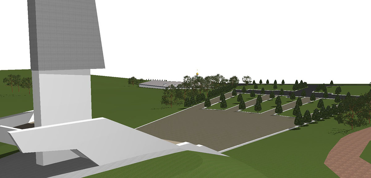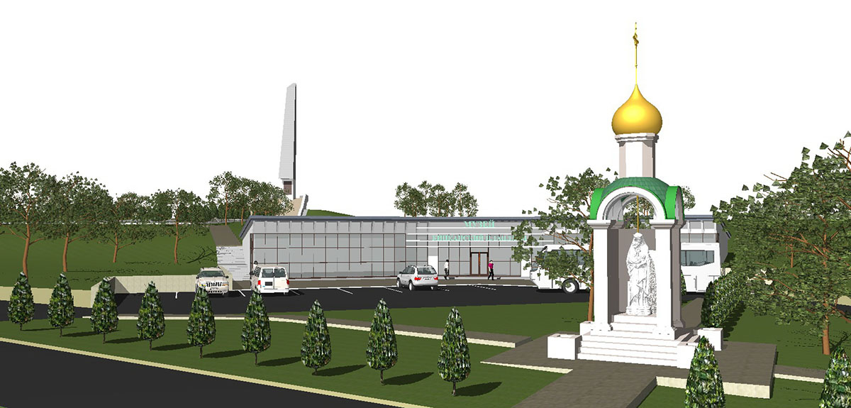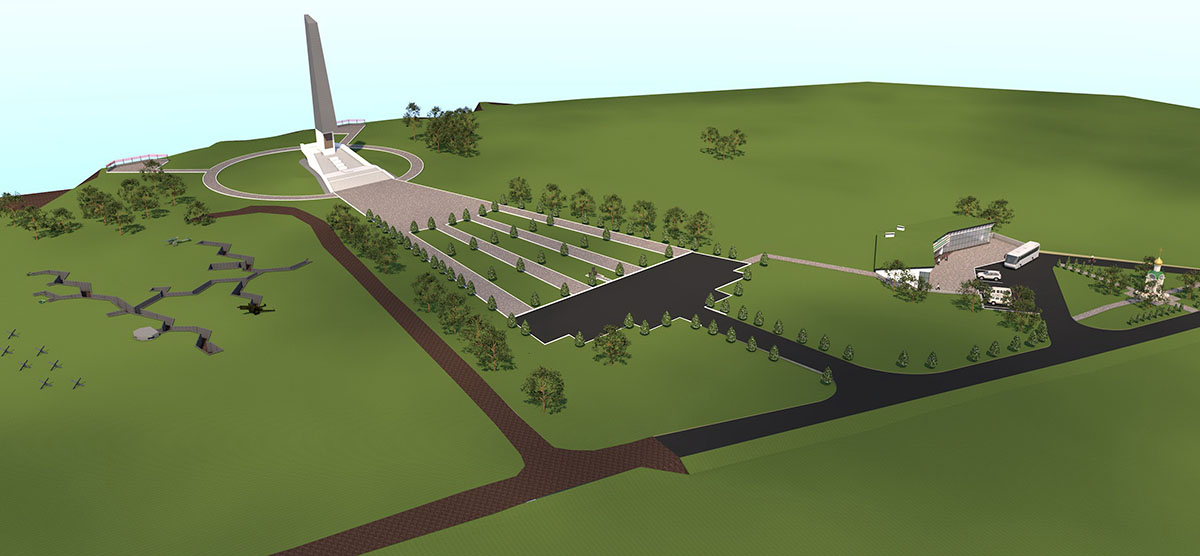«Мы предложили композицию из двух линий. Первая линия – до 15 метров. Она будет слева, как смотреть на стелу. Справа – строение музея, часовня, парковка. Первая его линия на 12-15 метров через центральный вход будет выходить на вторую линию. Вторая линия - до 30 метров», - рассказала начальник ведомства и добавила, что эта инсталляция поможет выразить значимость места для исторических событий.