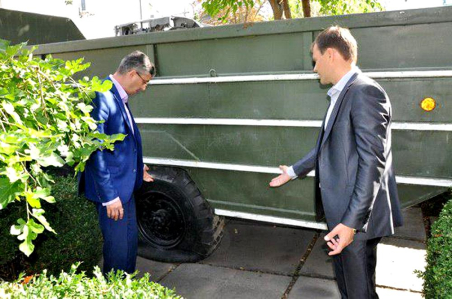 Особое внимание Вячеслав Фролов уделил машине-амфибии, установленной на территории учреждения