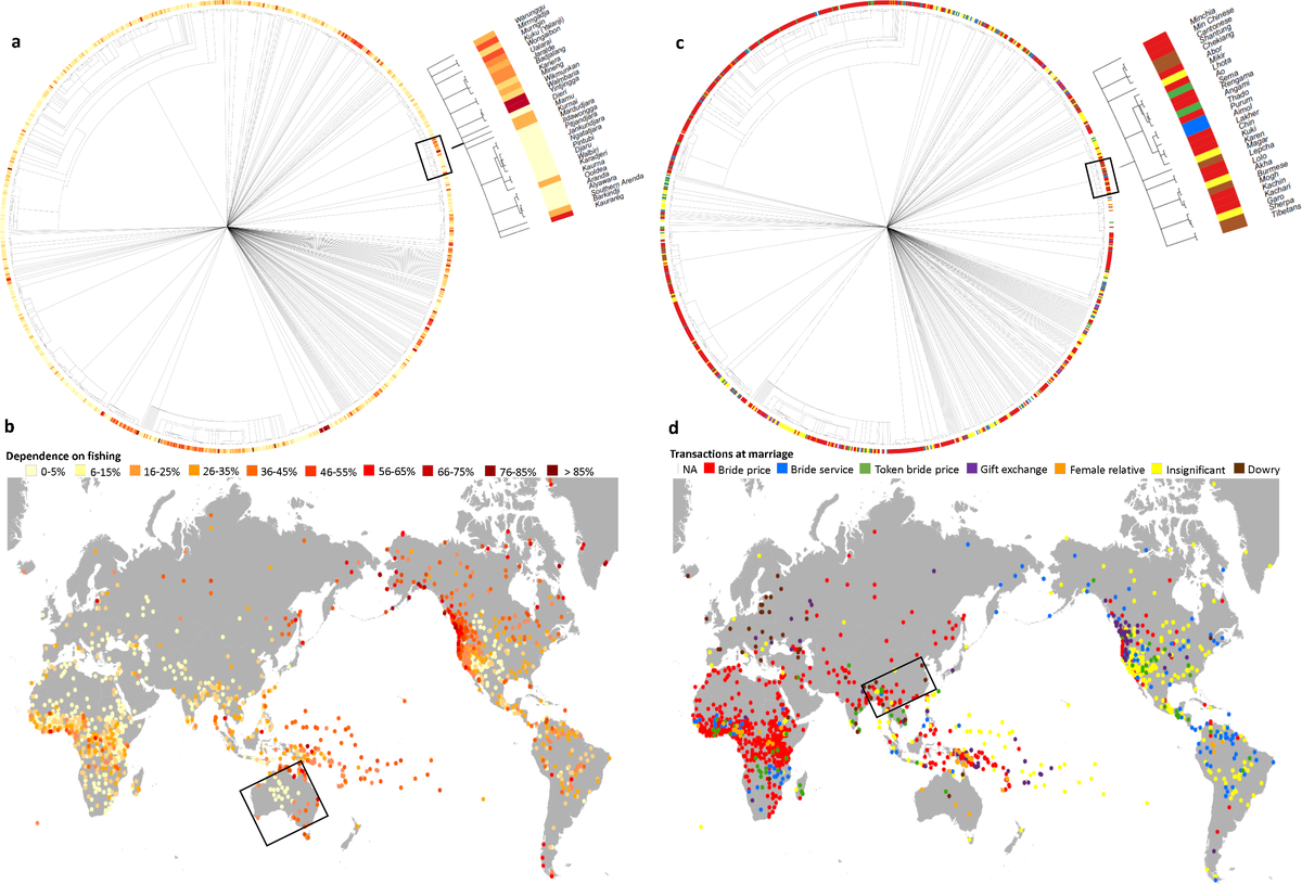 Международный научный коллектив, в который вошли учёные из Канады, США, Германии, Швейцарии, Великобритании, Австралии и Новой Зеландии, собрал глобальную базу данных мест, языков, культур и окружающей среды D-PLACE (Database of Places, Language, Culture and Environment). Она графически оформлена и выложена в открытый доступ, пишет «N+1».