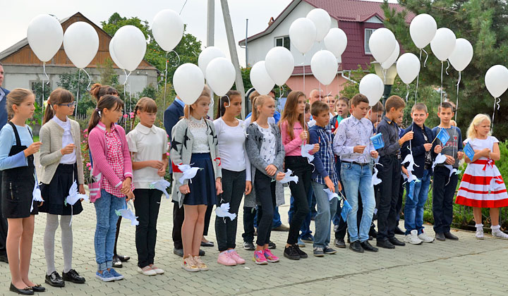 Бендерские школьники запустили в небо более 400 белых и голубых шаров с прикреплёнными к ним бумажными голубями – символом мира – и эмблемой акции.