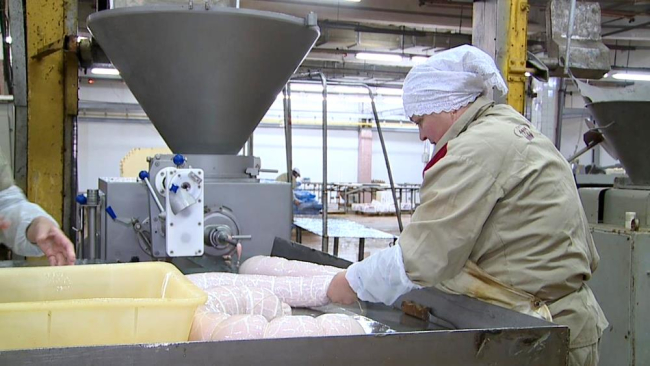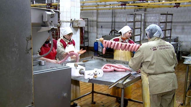 «Тяжело всем работать, работы вроде бы и не уменьшилось, сбыта нет нормального, делать можем много, но некуда девать нашу продукцию», — рассказала формовщица колбасных изделий Инна Мищенко.