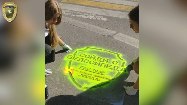 Бендеры, 24 сентября. /Новости Приднестровья/. В Бендерах у пешеходных переходов появились граффити, напоминающие горожанам правила безопасного движения. Их нанесли инспекторы бендерского ОГАИ совместно с волонтёрами движения «Звезда» и юными инспекторами движения из школ № 2 и № 15.