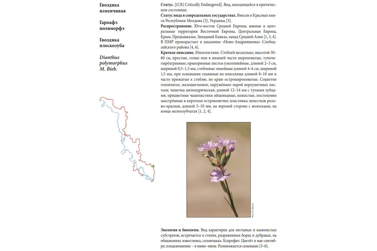Вот, что написано о гвоздике изменчивой в Красной книге ПМР: