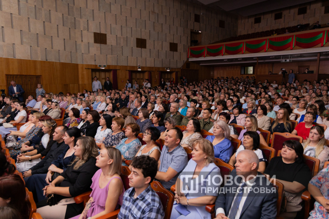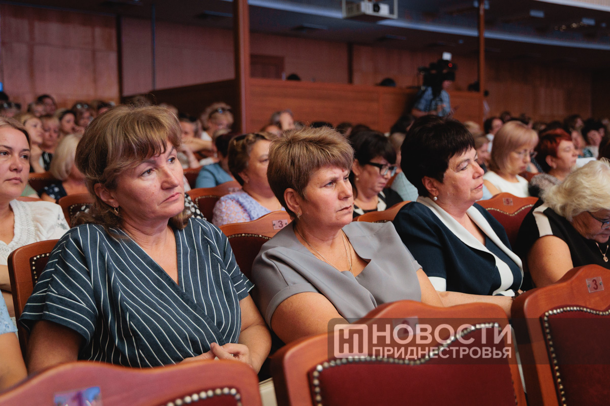 Во Дворце Республики сегодня побывали 500 педагогов со всего Приднестровья. Это учителя школ, преподаватели техникумов и вузов. В программе были выступления Президента ПМР Вадима Красносельского, первого Президента ПМР Игоря Смирнова, министра просвещения Светланы Иванишиной, её заместителя Галины Ратушняк и многих других.