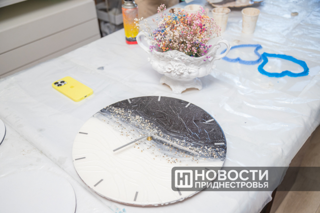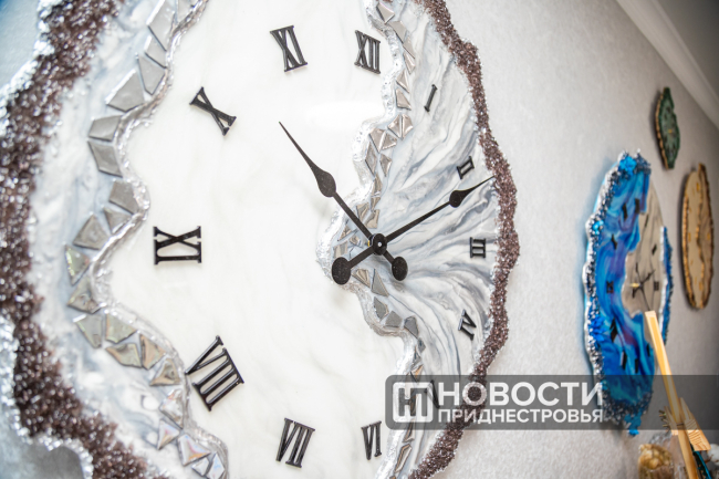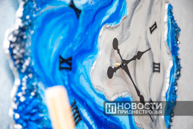 Можно сказать, что популярность изделий из эпоксидки только набирает обороты и мастеров в данной области немного. В Приднестровье Аладова вне конкуренции. Ее изделия уже бренд. К примеру, вот такие часы отсчитывают неспешный ход жизни, а может быть, наоборот, торопливый, во многих странах мира. Первый экземпляр больше года назад отправился в США.