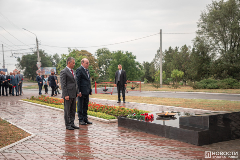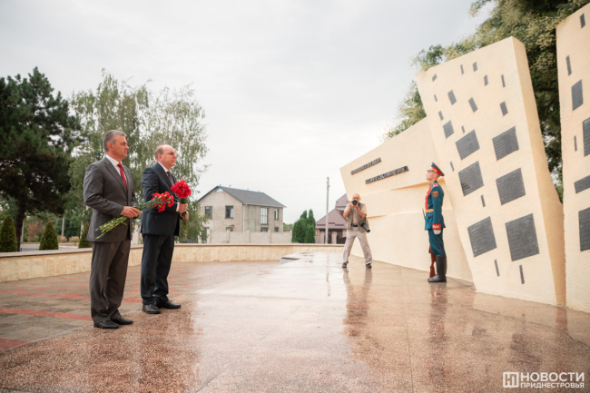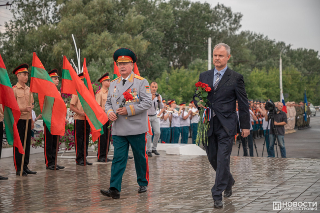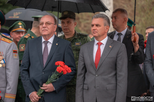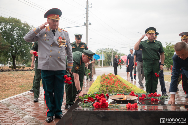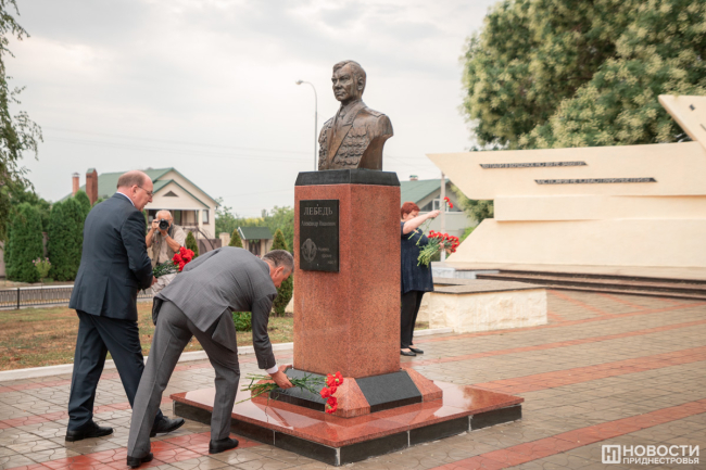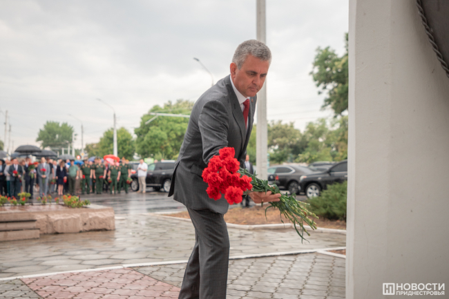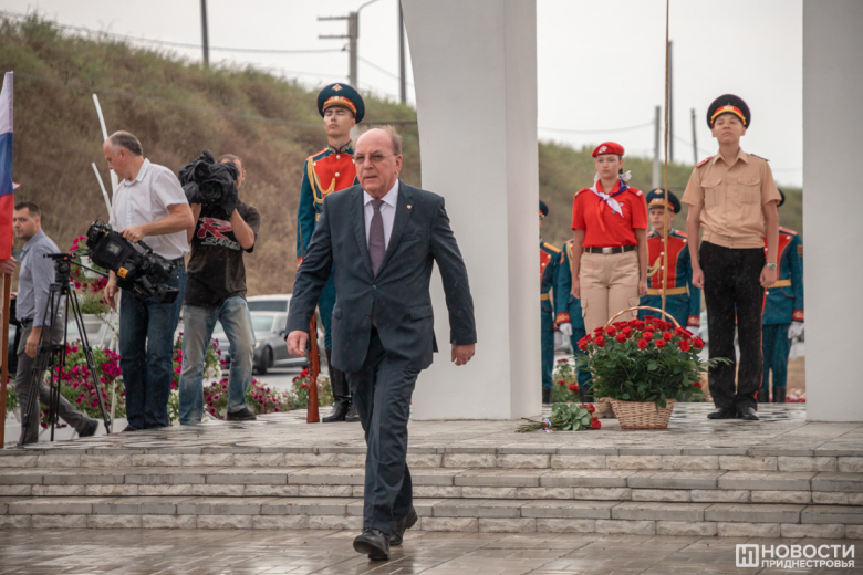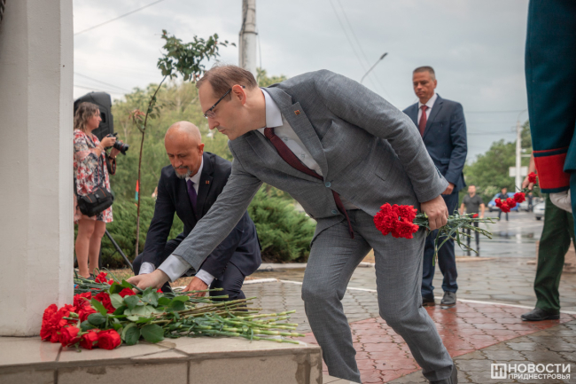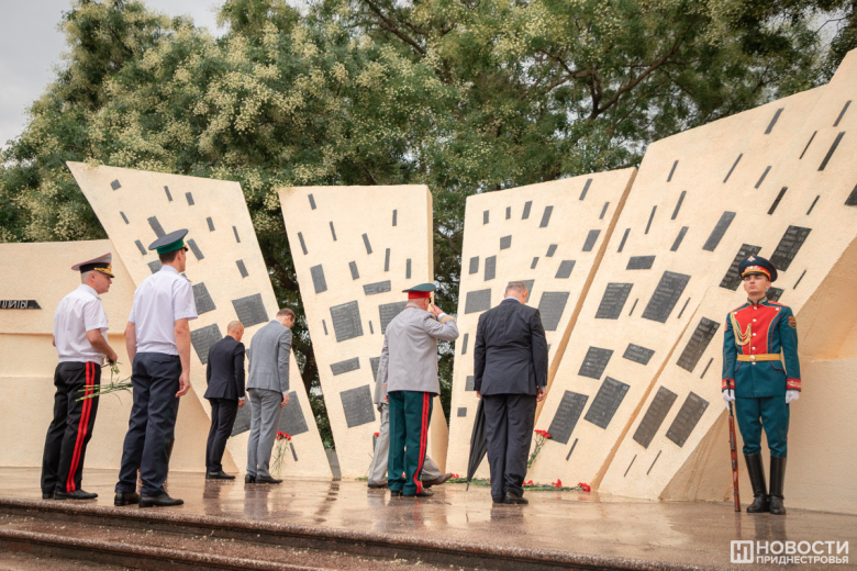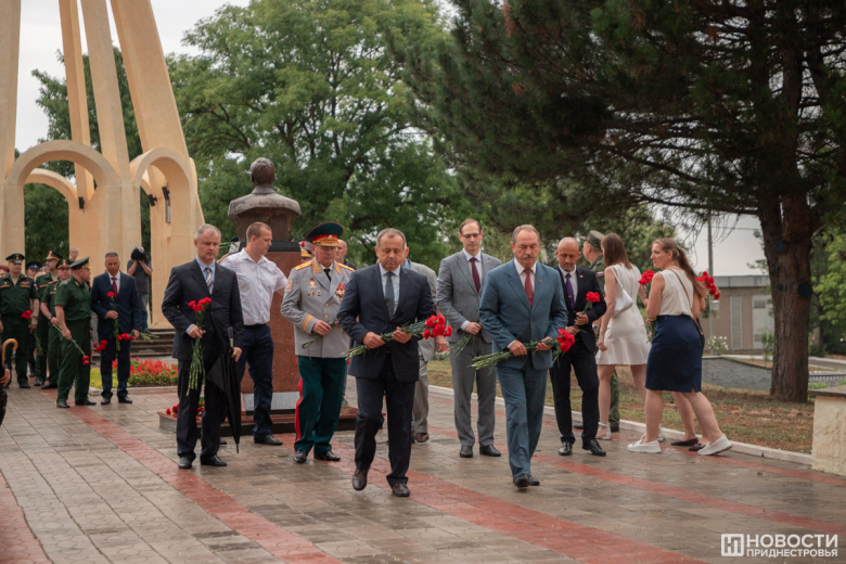 На расположенном рядом Мемориале Памяти и Скорби живые цветы возлагали сразу в нескольких местах. Это и Вечный огонь у постамента БМП, и памятник генералу Александру Лебедю, которого в Приднестровье считают одним из тех, кто остановил войну 1992-го года. И, конечно же, плита с именами защитников Бендер, погибших 30 лет назад во время отражения агрессии Молдовы.