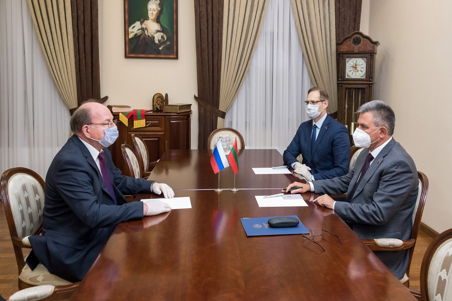 Ход переговорного процесса между ПМР и РМ стал одной из тем встречи Президента ПМР Вадима Красносельского с Чрезвычайным и Полномочным послом РФ в РМ Олегом Васнецовым. Обсуждалось также развитие ситуации с распространением коронавируса.