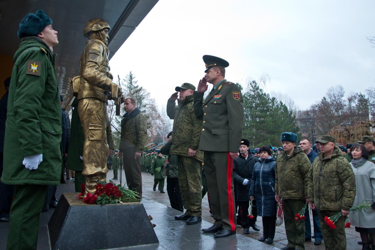 «Воина-миротворца России» установили возле столичного Дома офицеров. Монумент открыт в честь тех, кто служил и продолжает нести службу в рядах миротворческих сил России.