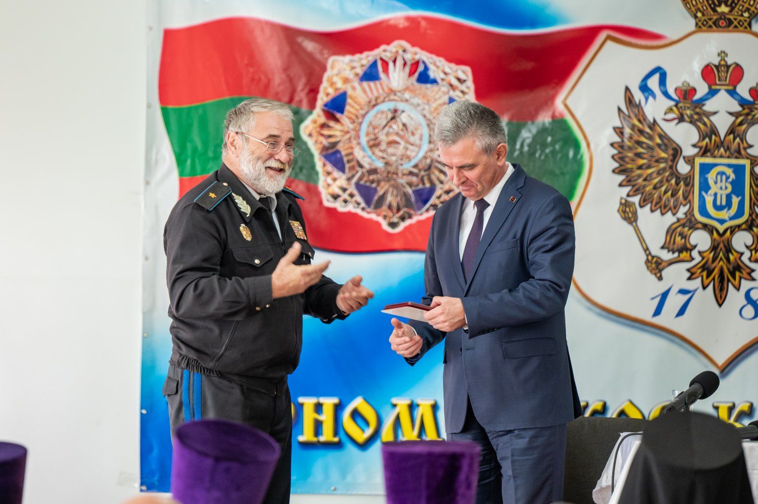 В субботу состоялся расширенный совет атаманов Черноморского казачьего войска, участие в котором принял Президент Вадим Красносельский. Главными темами стали деятельность казаков и текущая ситуация в Приднестровье. Казаки выступили с предложениями по созданию в республике центра казачьей культуры и установке памятной доски Владимиру Рябинскому – войсковому атаману ЧКВ 1994-2012 гг. Вадиму Красносельскому на встрече вручили Орден казачьей славы.