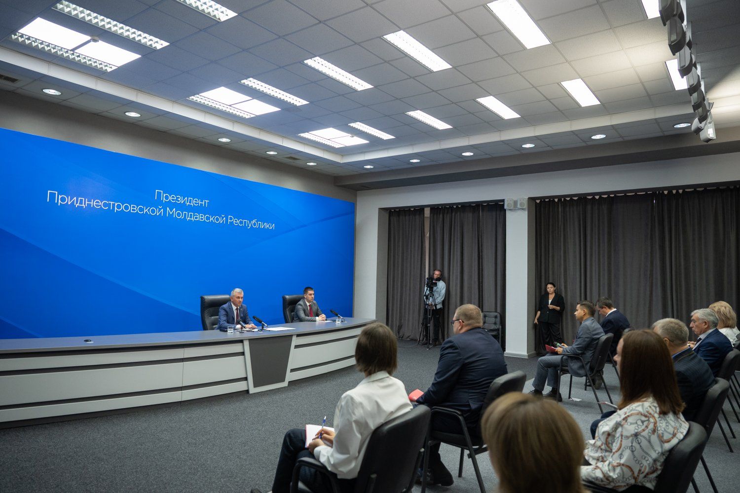 Тирасполь, 3 сентября. /Новости Приднестровья/. В преддверии Дня Республики глава приднестровского государства Вадим Красносельский провел встречу с представителями масс-медиа. Говорили о геополитической ситуации, перспективах возобновления переговорного процесса, об обеспечении безопасности приднестровцев, о целесообразности пролонгации действия желтого кода террористической опасности, о ходе расследования убийства Олега Хоржана.