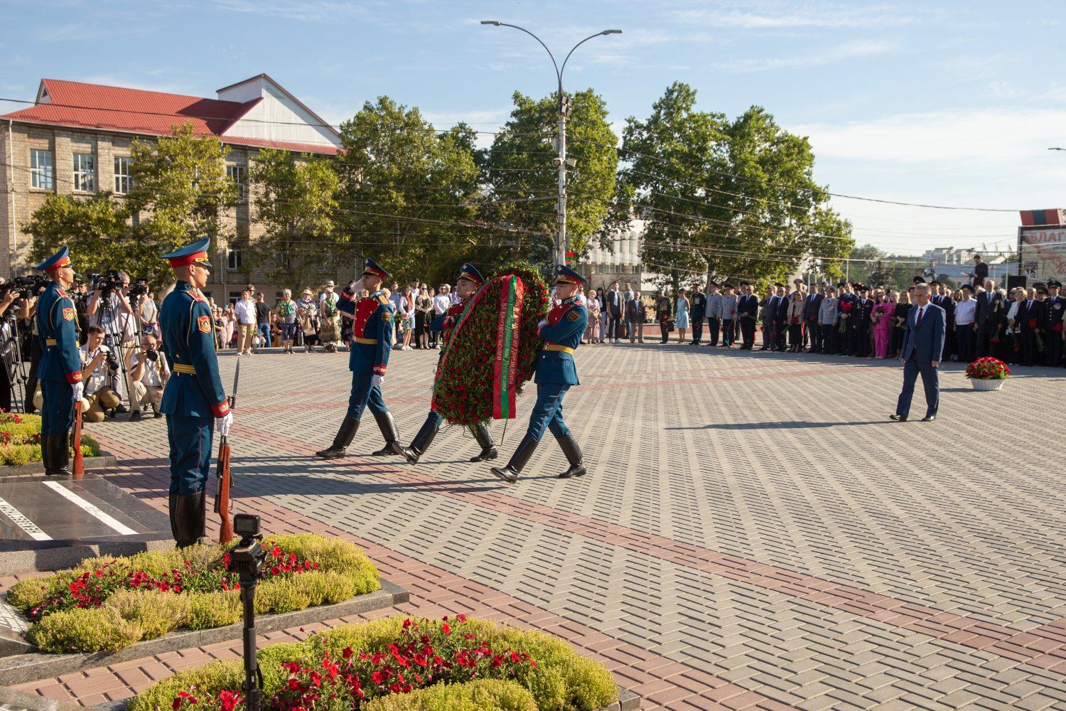 У всех мемориалов и памятников защитникам 2 сентября – церемонии возложения цветов и митинги. По поручению главы государства народные гулянья организованы повсеместно. Официальные торжества с участием первых лиц – в Тирасполе. Президент ПМР возложил цветы на столичном Мемориале Славы в память о защитниках Родины.