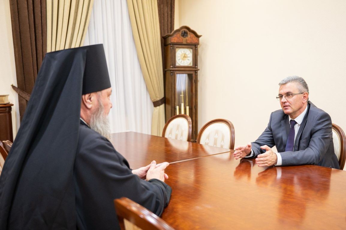 Вопросы взаимодействия государства и церкви, в частности подвижки в строительстве новых православных храмов на территории республики, обсудили на встрече в понедельник глава государства Вадим Красносельский и архиепископ Тираспольский и Дубоссарский Савва.