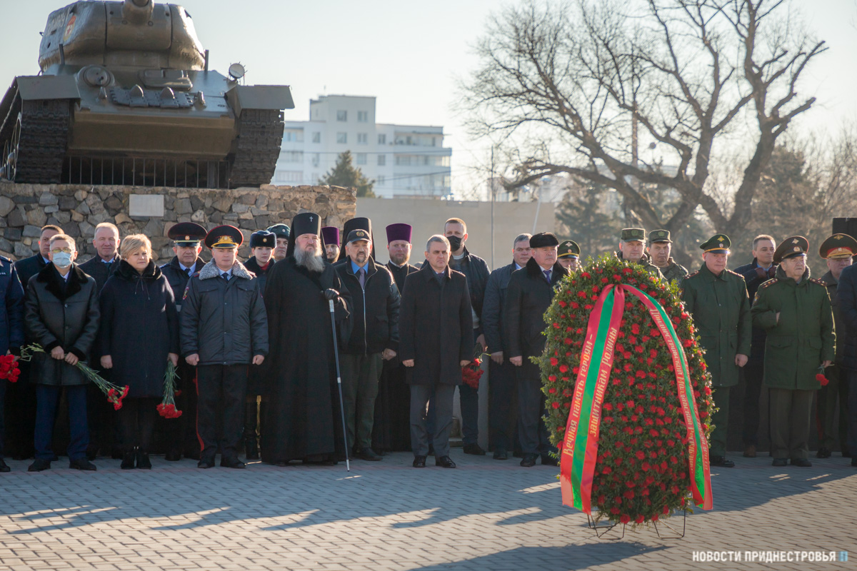 На столичном Мемориале Славы прошёл торжественный митинг ко Дню защитника Отечества с участием руководства республики, российских миротворцев, военнослужащих и духовенства. Первым живые цветы к Вечному огню возложил Президент Вадим Красносельский. Он подчеркнул, что в Приднестровье это особый праздник, здесь чтят всех, что защищал родную землю в разные эпохи.