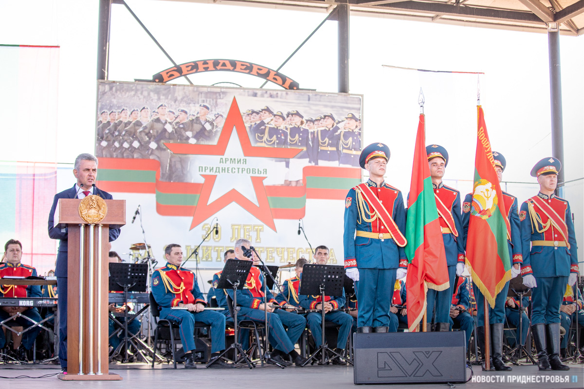 Глава государства стал участником торжественного собрания, приуроченного к 30-летнему юбилею Вооружённых сил Приднестровья. Праздничное мероприятие организовали в парке Александра Невского Бендерской крепости.
