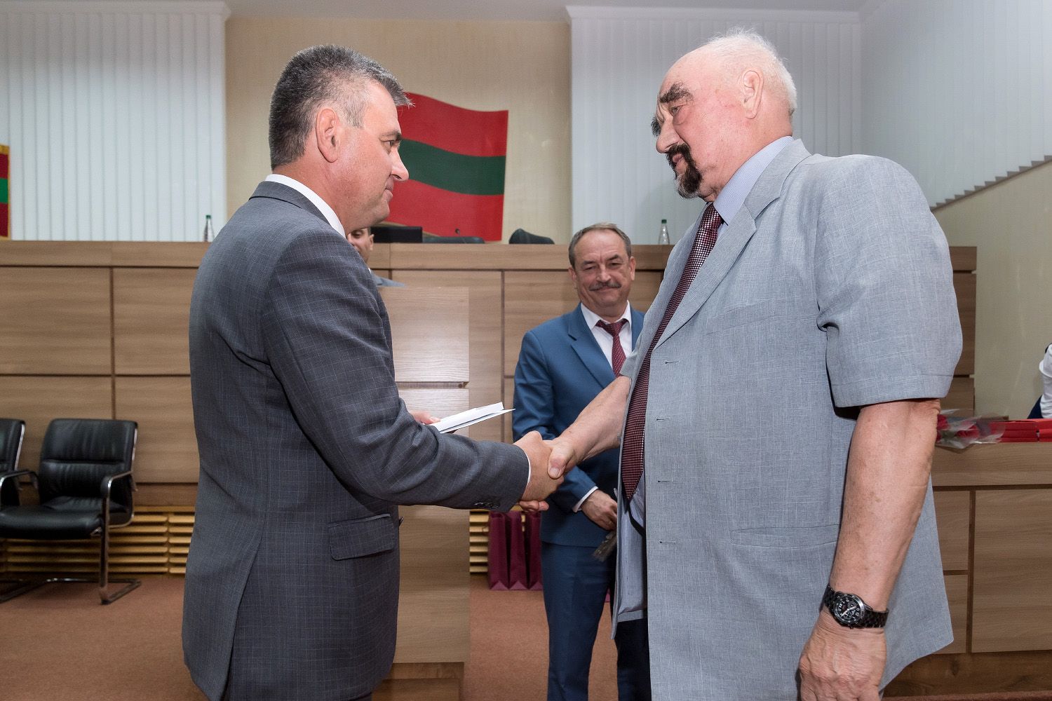 Нагрудные знаки «Депутату-создателю ПМР» накануне праздника вручил членам Совещательного собрания первых приднестровских депутатов Президент республики.
