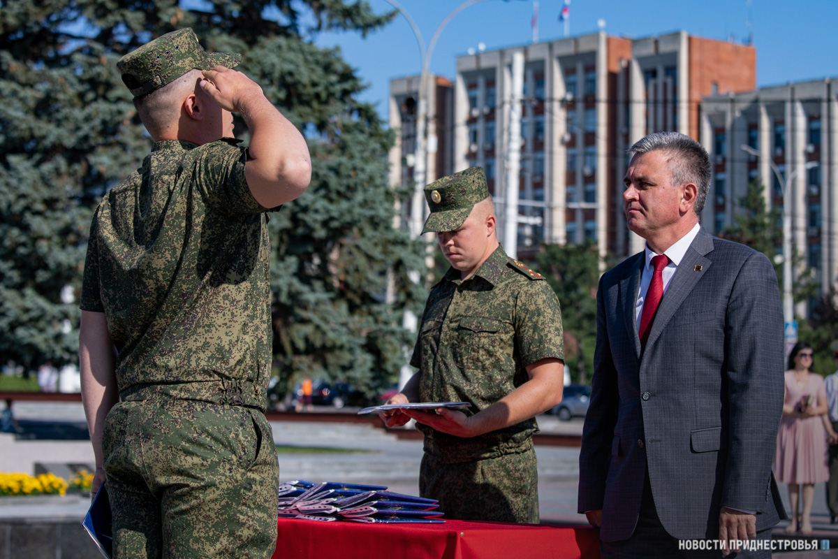 В пятницу на столичном Мемориале Славы выпускникам Военного института Министерства обороны им. генерал-лейтенанта А. И. Лебедя вручили дипломы. Молодых лейтенантов лично поздравил Главнокомандующий Вооружёнными силами ПМР Вадим Красносельский.
