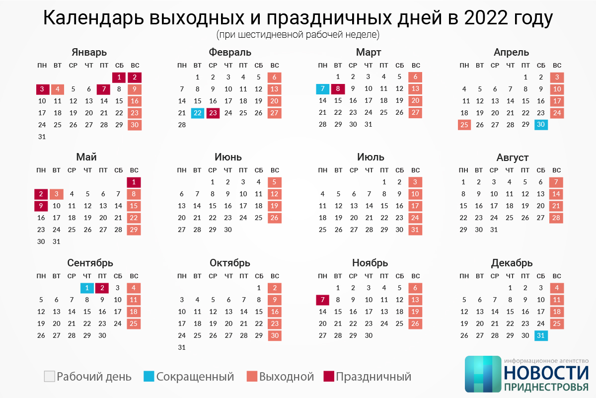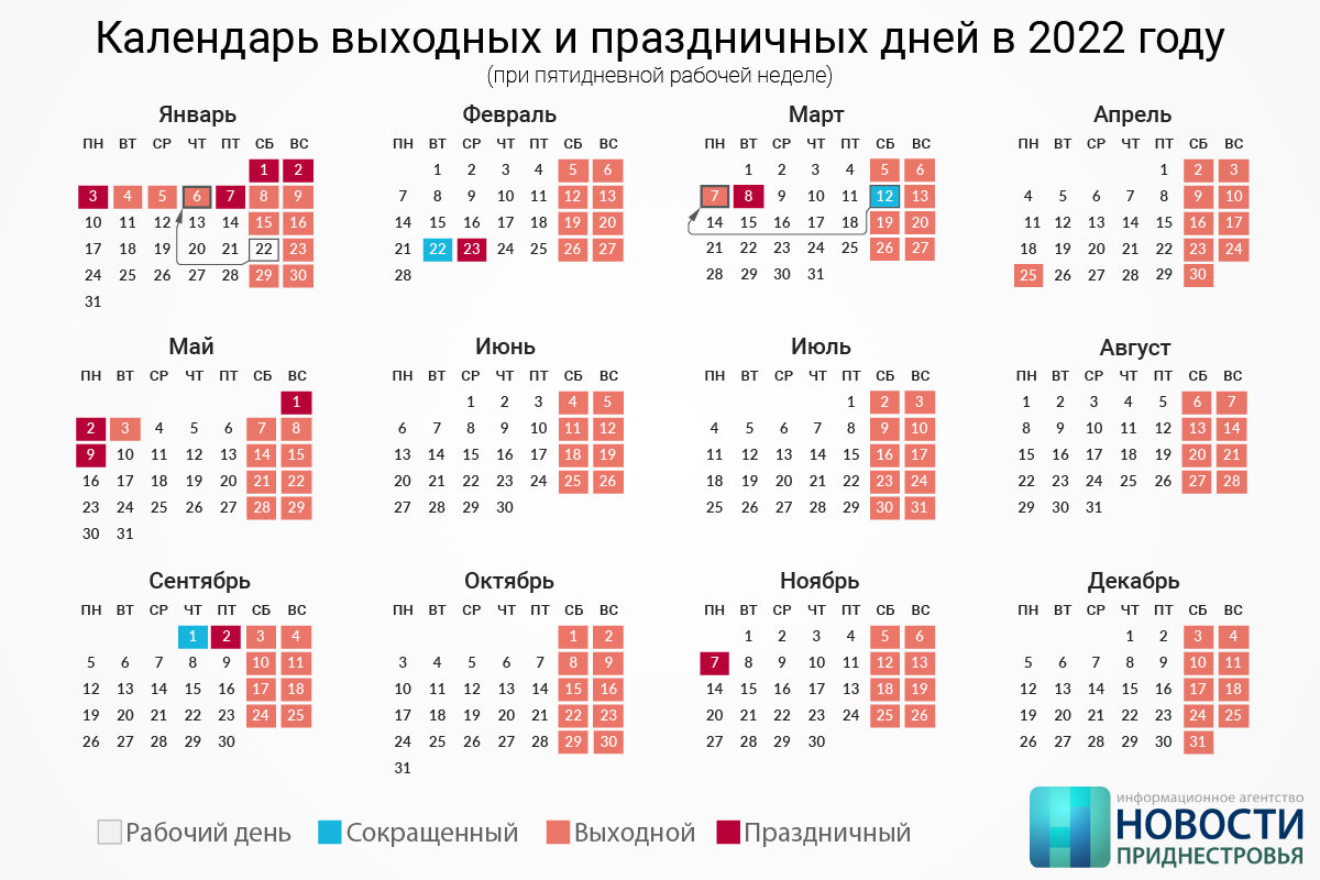 Утверждён производственный календарь на 2022 год. Минсоцзащиты рассчитало количество рабочего времени как для пятидневной, так и для шестидневной рабочей недели.