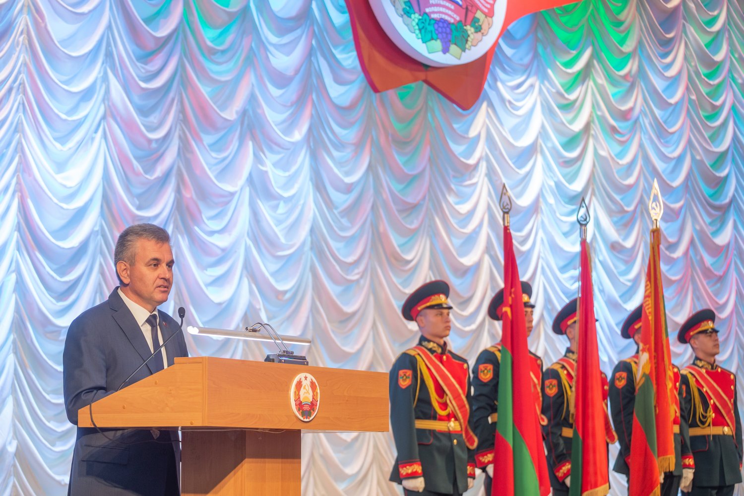 По завершении официальной части праздничной программы ко Дню Республики глава государства Вадим Красносельский ответил на вопросы журналистов, поздравил всех приднестровцев с праздником. Президент также прокомментировал ситуацию с международным признанием Приднестровья.