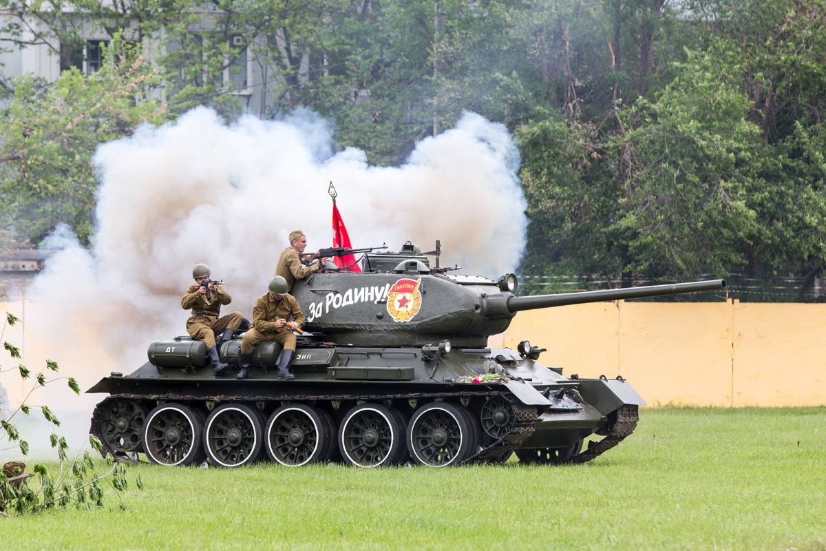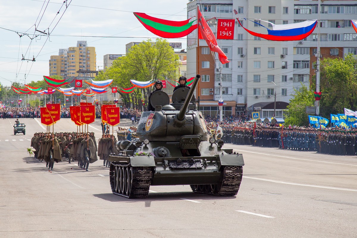 В столице День Победы начался с праздничного парада, на котором по главной площади города проехал легендарный танк Т-34 и прошли коробки российских и приднестровских военнослужащих. Затем на столичном мемориале Воинской Славы прошла церемония возложения цветов к могилам защитников Отечества.