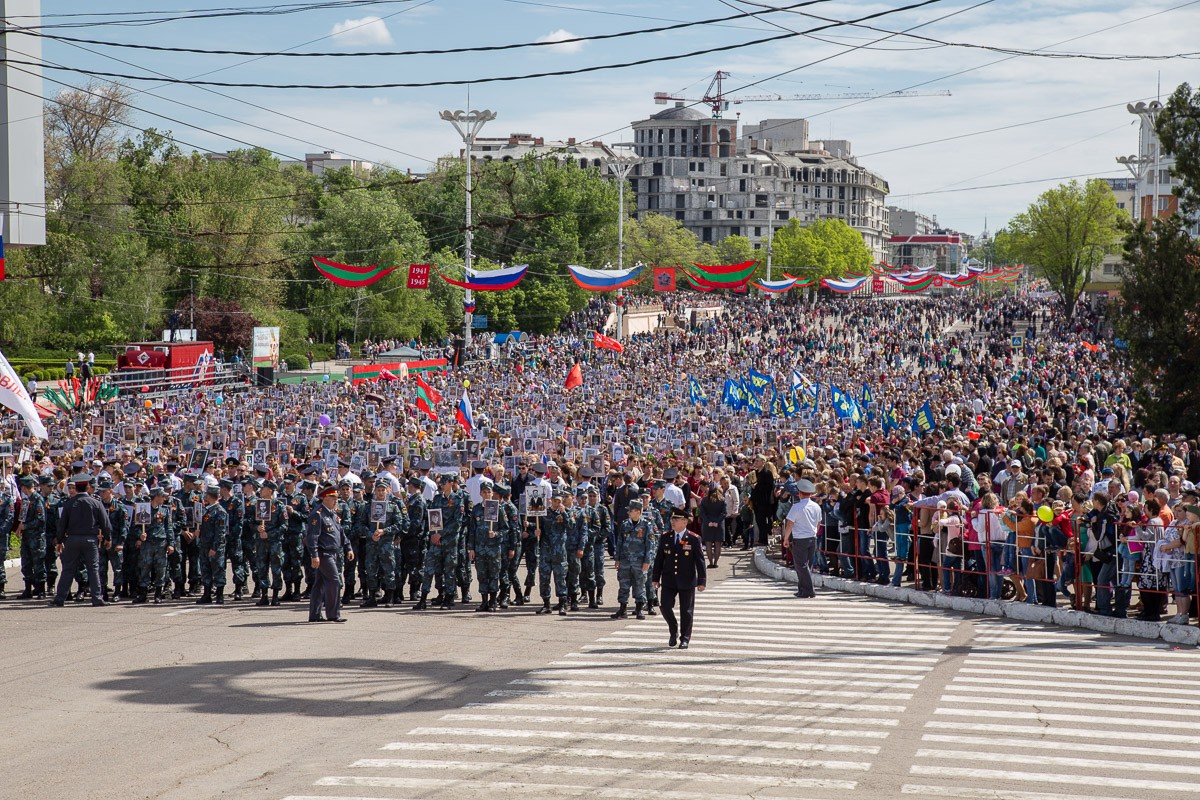 Акция «Бессмертный полк» прошла практически во всех городах и собрала десятки тысяч участников. В Тирасполе нескончаемый поток людей шел по центральной улице около полутора часов. На мраморных плитах Мемориала Славы остались горы цветов.