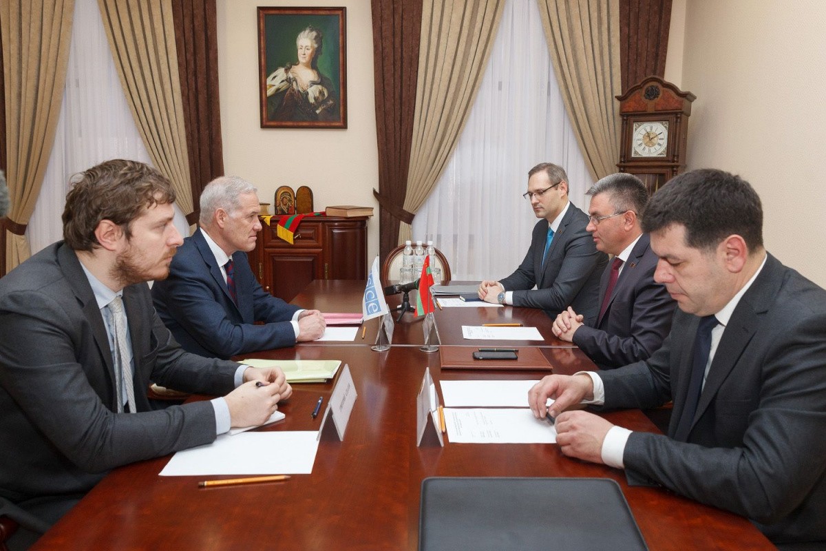 Вадим Красносельский встретился с главой Миссии ОБСЕ в Молдове Майклом Скэнланом. Собеседники говорили о необходимости достижения прогресса и по вопросам, содержащимся в «Венском протоколе». Глава Миссии ОБСЕ акцентировал внимание на автомобильной проблематике, выразив надежду на скорейшее нахождение механизма участия приднестровского автотранспорта в международном дорожном движении. Значимыми для решения он также назвал проблемы, связанные с политически мотивированными уголовными делами и свободой передвижения граждан.