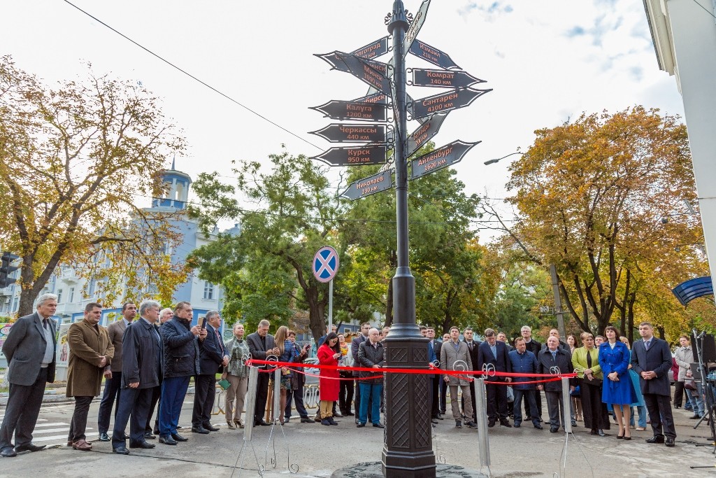 В честь праздника у столичного главпочтамта открыли памятный знак с указанием городов-побратимов.