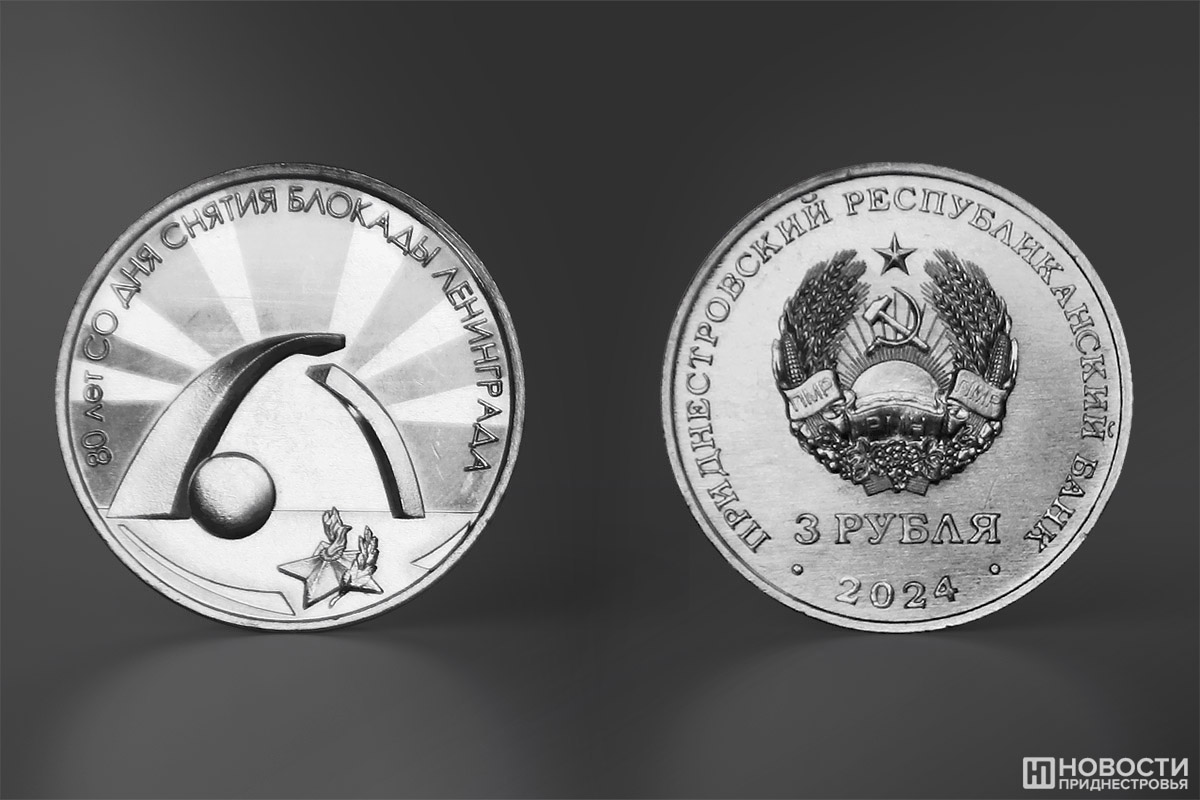 Банк Приднестровья к 80-летию снятия блокады Ленинграда выпустил 3-рублевую памятную монету тиражом 5 тысяч штук.