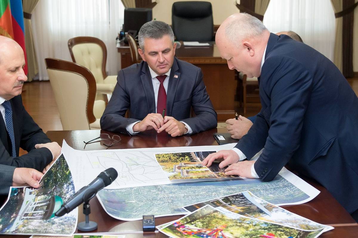 Парк Витгенштейна в Каменке реконструируют. Каменский глава показал президенту проектные наработки беседок, ротонд и входа в парк.