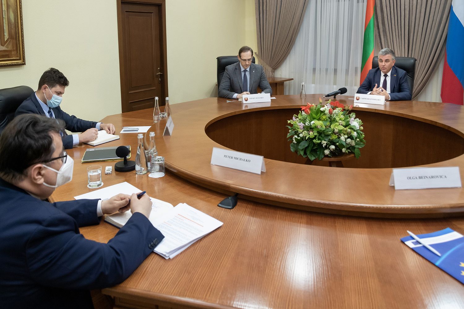 В МИД ПМР прошла встреча с главой делегации ЕС в РМ Петером Михалко. Глава ведомства Виталий Игнатьев подробно остановился на актуальных угрозах переговорному процессу, связанных с применяемыми и запланированными ограничениями со стороны РМ.