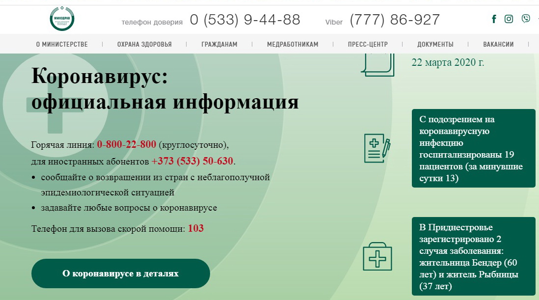 Минздрав ПМР запустил на своём сайте раздел по коронавирусу. Он содержит оперативную информацию по ситуации с COVID-19 в республике, статистические данные и клинические рекомендации.