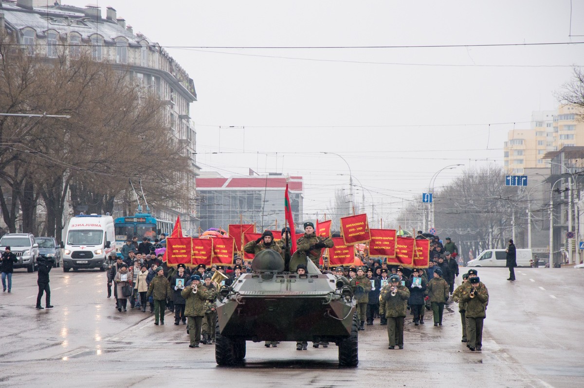 В Тирасполе, как и в других городах республики, отметили 29-ю годовщину вывода советских войск из Афганистана. По центральной площади столицы к Мемориалу Славы прошла колонна из сотен жителей республики. Возглавлял шествие «Бессмертный полк»: с портретами воинов-афганцев, погибших как в военное, так и в мирное время, шли жёны и матери, боевые товарищи, а также школьники.