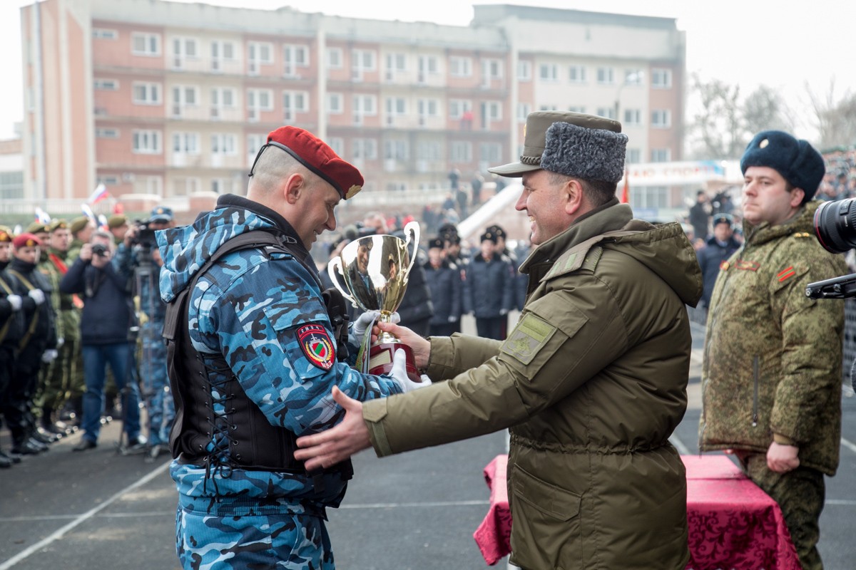 В Тирасполе прошел традиционный военно-спортивный праздник, посвященный Дню защитника Отечества. В этом году участниками состязаний стали 6 команд: МВД, МГБ, Министерства обороны, Государственной службы охраны, Минюста, Оперативной группы российских войск, а также суворовцы и кадеты. По итогу соревнований команда МВД завоевала переходящий кубок.