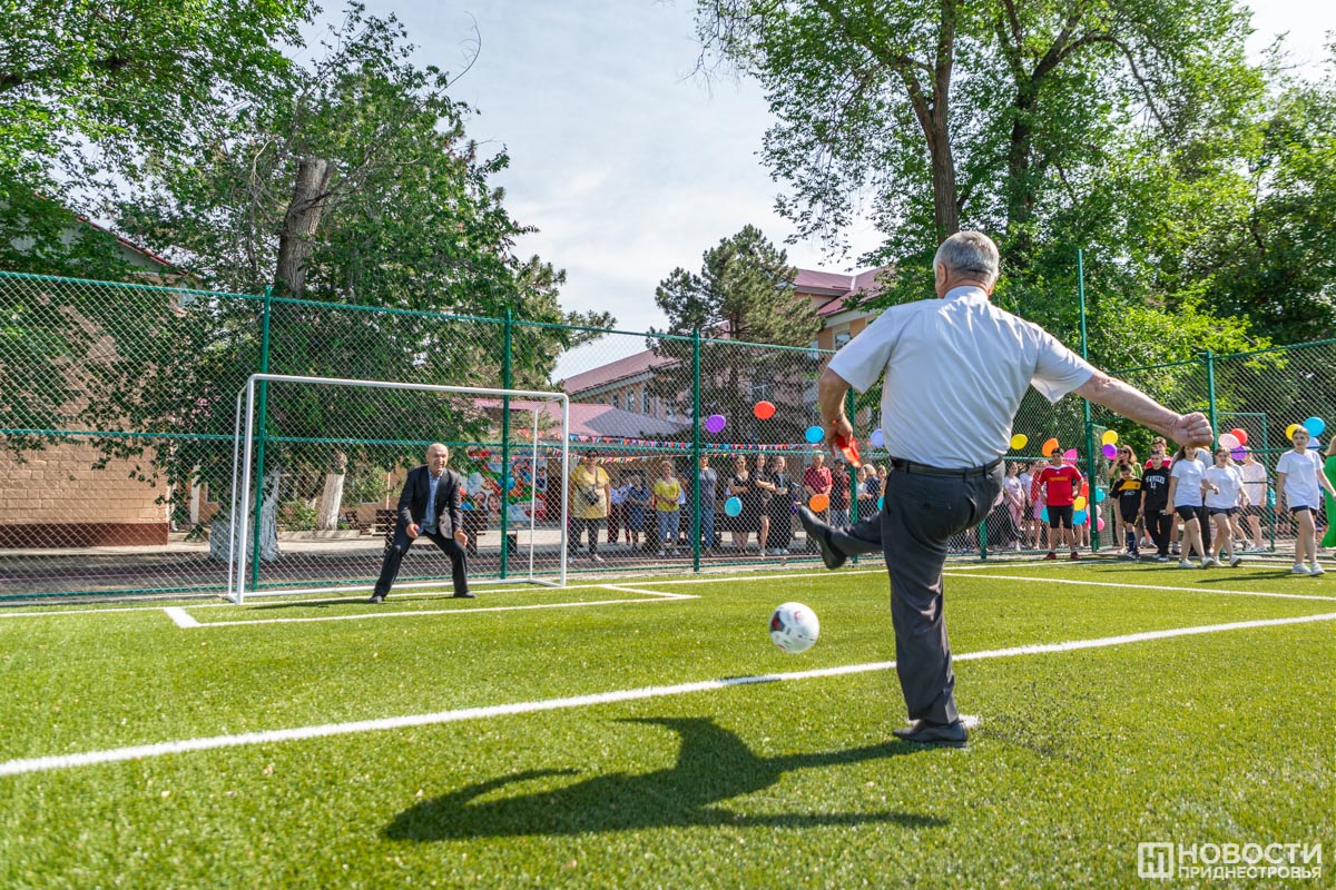 А на спортплощадке в Терновке открыли поле для мини-футбола и беговую дорожку. Это продолжение проекта, разработанного здесь в прошлом году. Глава госадминистрации Слободзеи Василий Тищенко нанес первый удар по мячу.
