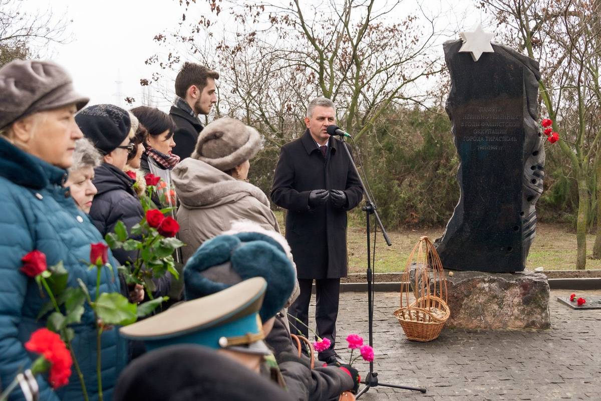 В 75-ю годовщину освобождения узников лагеря смерти Освенцим в Тирасполе состоялся митинг-реквием у памятника жертвам Холокоста. Участие в нём принял Президент ПМР.