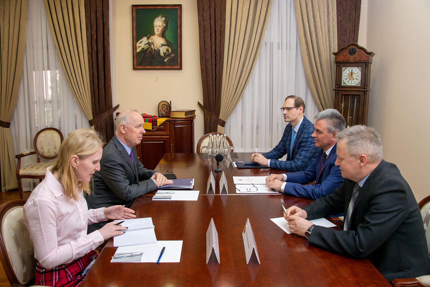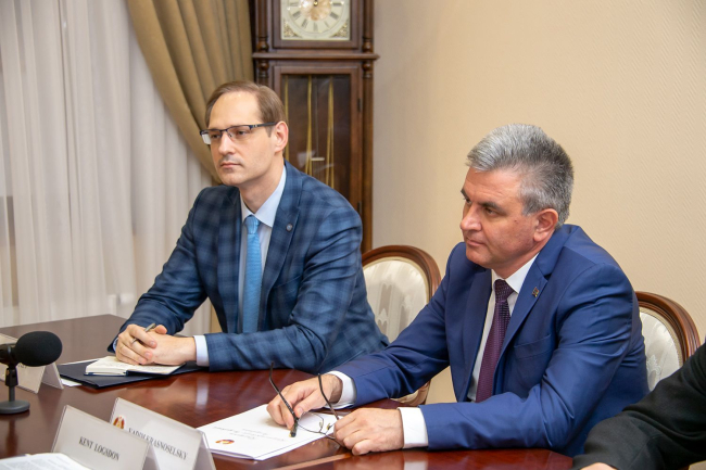 Тирасполь, 3 апреля. /Новости Приднестровья/. В среду Президент ПМР Вадим Красносельский провёл встречи с Чрезвычайным и Полномочным Послом Ее Величества Королевы Соединенного Королевства Великобритании и Северной Ирландии в РМ Стивеном Фишером, а также с Чрезвычайным и Полномочным Послом США в РМ Кентом Логсдоном. Главной темой стало обсуждение положения дел в переговорном процессе между Приднестровьем и Молдовой.