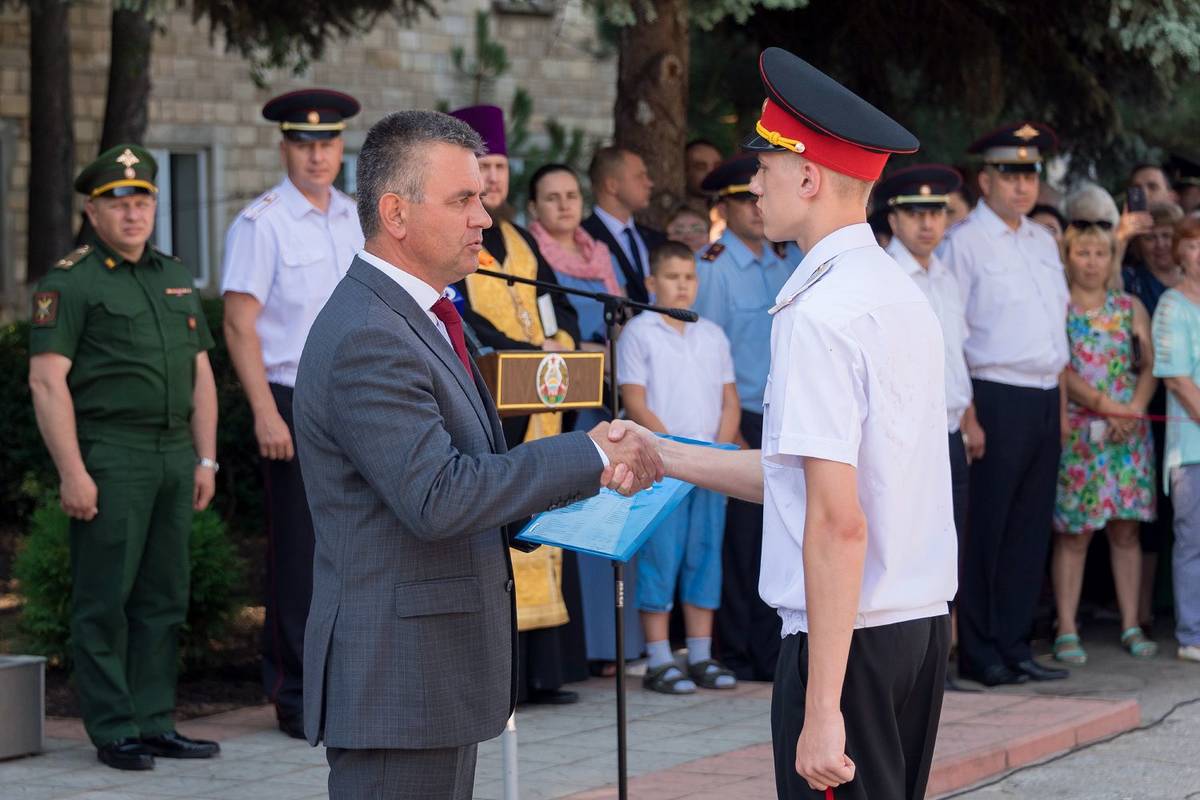 Президент ПМР поздравил кадет МВД с окончанием обучения. В этом году в Республиканском кадетском корпусе 35 выпускников. Вадим Красносельский вручил ребятам аттестаты и ценные подарки.