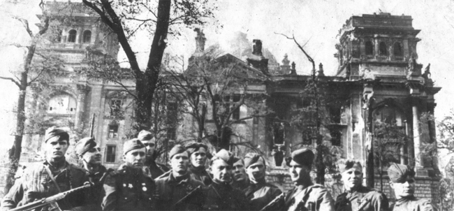 В фондах Слободзейского музея хранятся два очень интересных снимка 75-летней давности. На одном из них здание Рейхстага, на фоне которого позирует группа разведчиков 756-го стрелкового полка 150-й стрелковой Идрицко-Берлинской дивизии, той самой, которая получила одно из девяти специальных знамён, предназначенных для водружения над Рейхстагом. Именно этот флаг стал Знаменем Победы – на крышу немецкого парламента 30 апреля в 22 часа (по Берлинскому времени, 1 мая по Московскому) его водрузили сержант Егоров и младший сержант Кантария при поддержке группы разведчиков. Все эти бойцы есть на снимке из Слободзейского музея. Фотография принадлежала Ивану Пальчикову – одному из участников операции по водружении Знамени Победы. На фото он первый справа – самый молодой в этой команде. В конце 60-х годов Иван Егорович переехал в Приднестровье и поселился с семьёй в Слободзее, где прожил до самой смерти. Так материалы солдата «последнего сражения» Великой Отечественной войны оказались в местном музее.