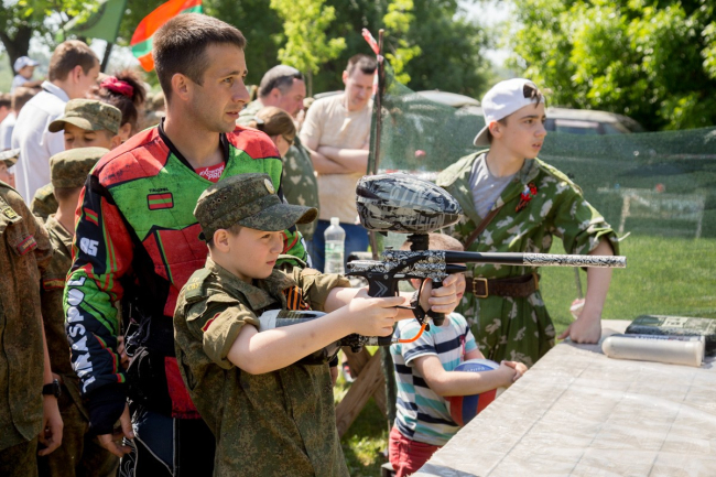 «Не бойтесь, мы не кусаемся», - заверил один из них. Оказалось, что клуб по страйкболу каждый год в преддверии 9 Мая организовывает такие вылазки на городские праздники. Взрослым и малышам разрешают надеть специальный костюм и взять в руки ружьё.