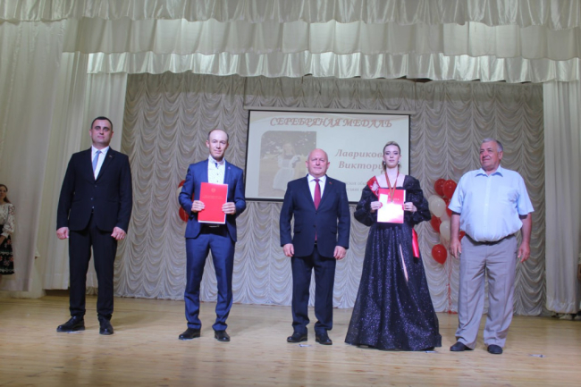 Затем в Доме культуры состоялось торжественное мероприятие. В этом году Каменский район выпустил во взрослую жизнь 76 юношей и девушек. Семерым из них были вручены золотые и серебряные медали и пятерым – аттестаты с отличием, а также грамоты и материальное поощрение от главы государственной администрации района и города Владимира Бычкова и депутата Верховного Совета ПМР Валерия Бабчинецкого.