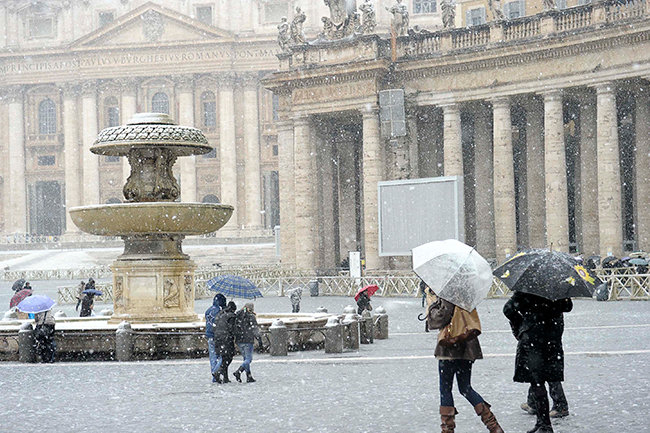 В Риме второй день подряд закрыты школы и детские сады. С перебоями ходят автобусы, трамваи и поезда. Тысячи пассажиров часами не могут покинуть поезда, остановившиеся на путях из-за мороза и снега.