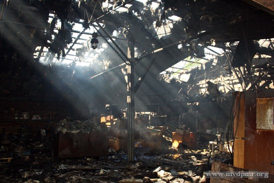 Прибывшие на место происшествия два расчёта спасателей СВПЧ-1 ликвидировали воспламенение в течение двух часов. Как сообщает пресс-служба МВД ПМР, площадь пожара составила 150 кв. м. Огонь уничтожил кровлю здания и повредил готовую продукцию в помещении склада.