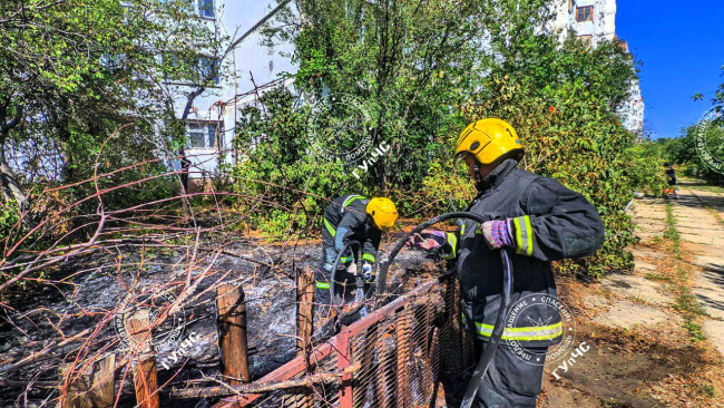 В результате выгорели 150 квадратных метров сухой травы, цветов и кустарника около многоэтажки.