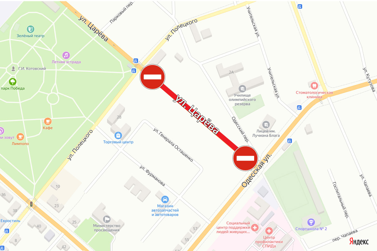 Кроме того, в Тирасполе перекроют движение транспорта по улице Царева на участке от ул. Одесской до ул. Полецкого с 5 по 29 августа.