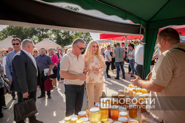 Фестиваль также посетил Президент ПМР Вадим Красносельский с супругой Светланой. Они оценили различные подворья, выставочные и торговые локации, пообщались с предпринимателями.