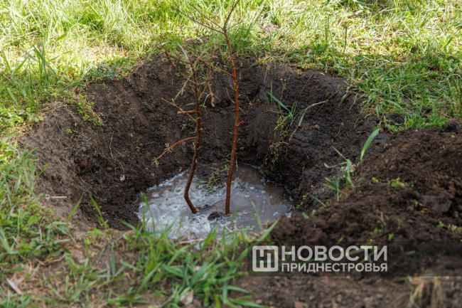 Представители ветеранской организации, воины-афганцы, защитники ПМР и школьники высадили деревья в память о героях, победивших фашизм