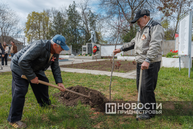 Слободзейский район, 15 апреля. /Новости Приднестровья/. В честь предстоящего 80-летия Великой Победы в селе Ближний Хутор заложили Аллею ветеранов. Представители Совета ветеранов войны, труда и Вооруженных сил Слободзейского района, воины-афганцы, защитники Приднестровья и школьники Ближнехуторской школы высадили 80 деревьев и кустарников в память о героях, победивших фашизм. На сегодняшний день в селе в живых не осталось ни одного ветерана.