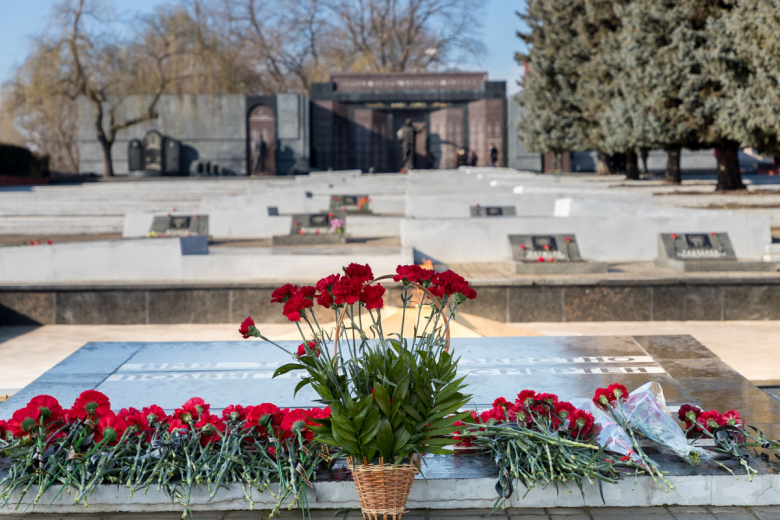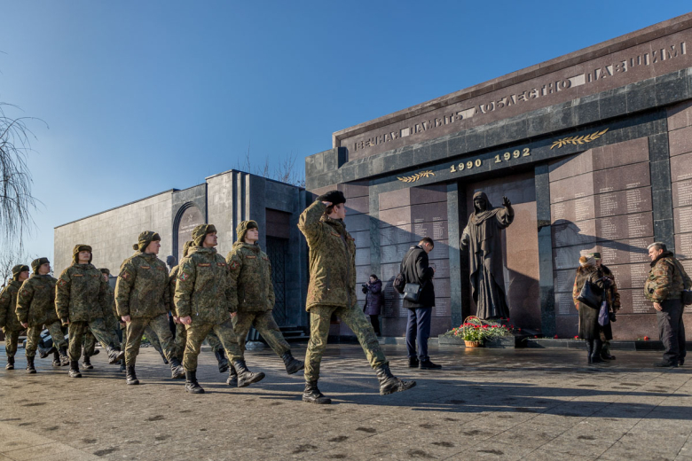 В память о погибших бойцах ТСО была объявлена минута молчания. К могилам павших защитников легли живые цветы.